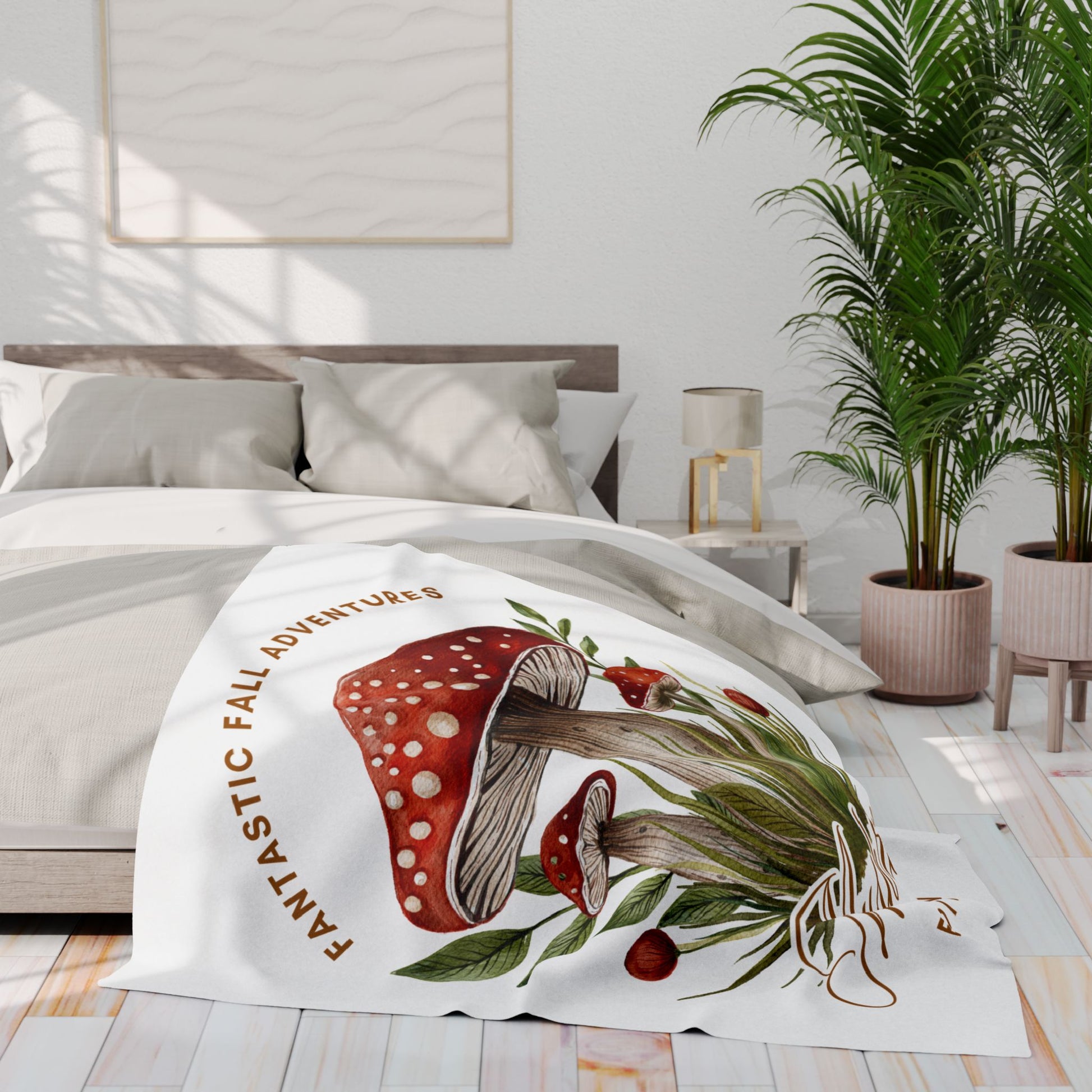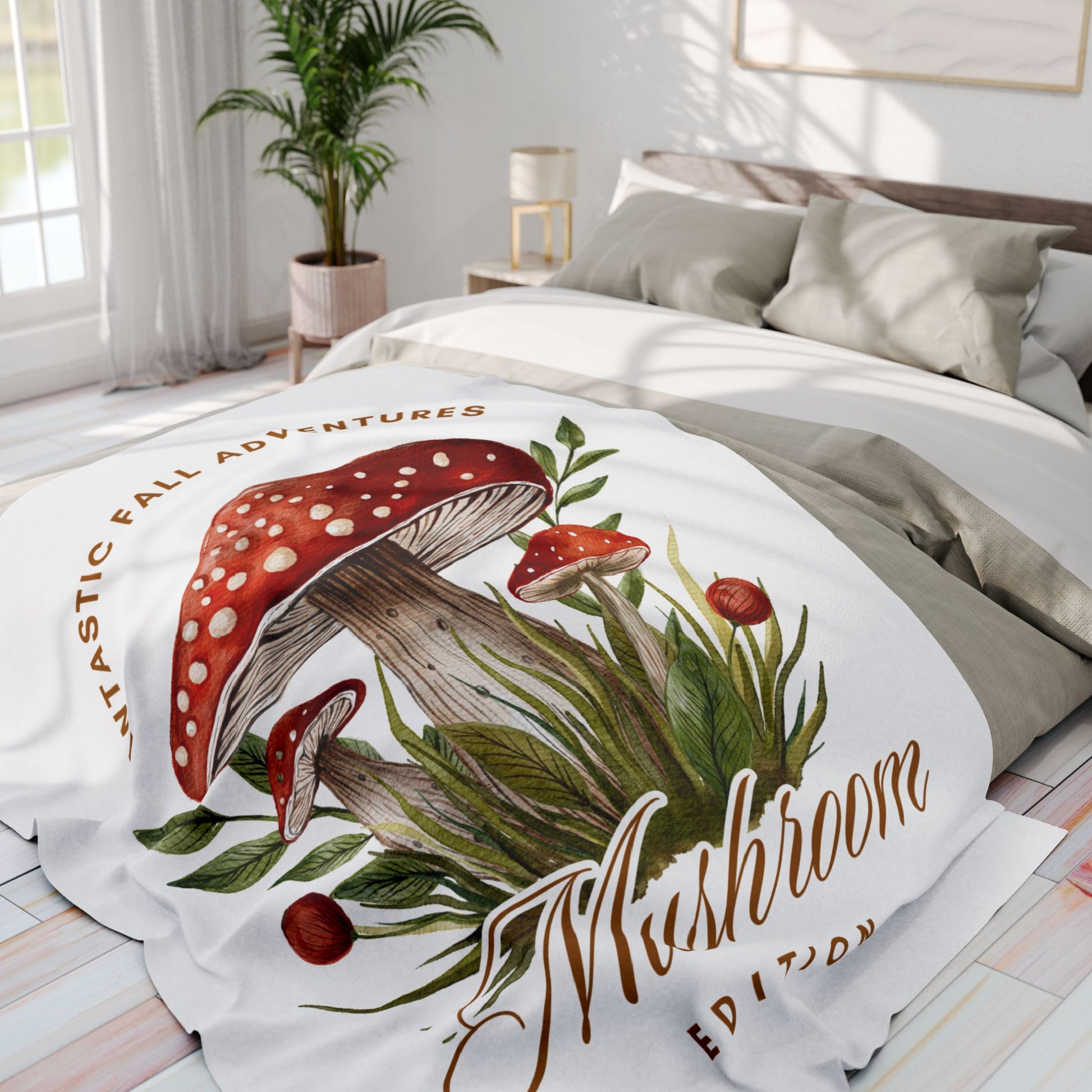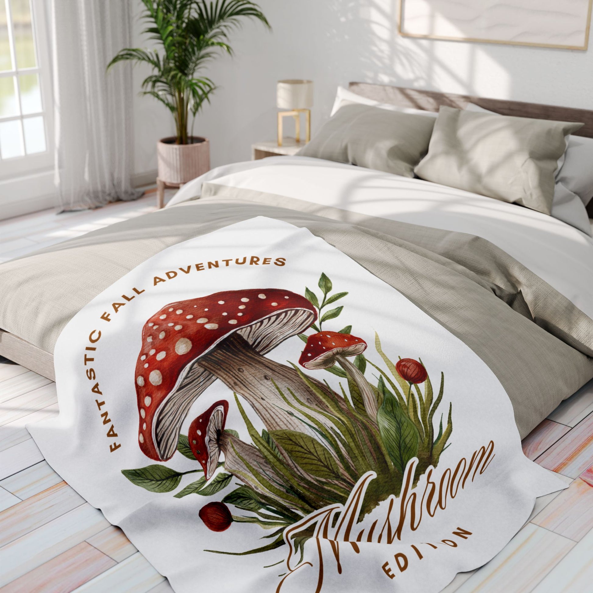 Fall Adventures Mushroom Edition Fleece Blanket | Cozy Autumn Throw Blanket