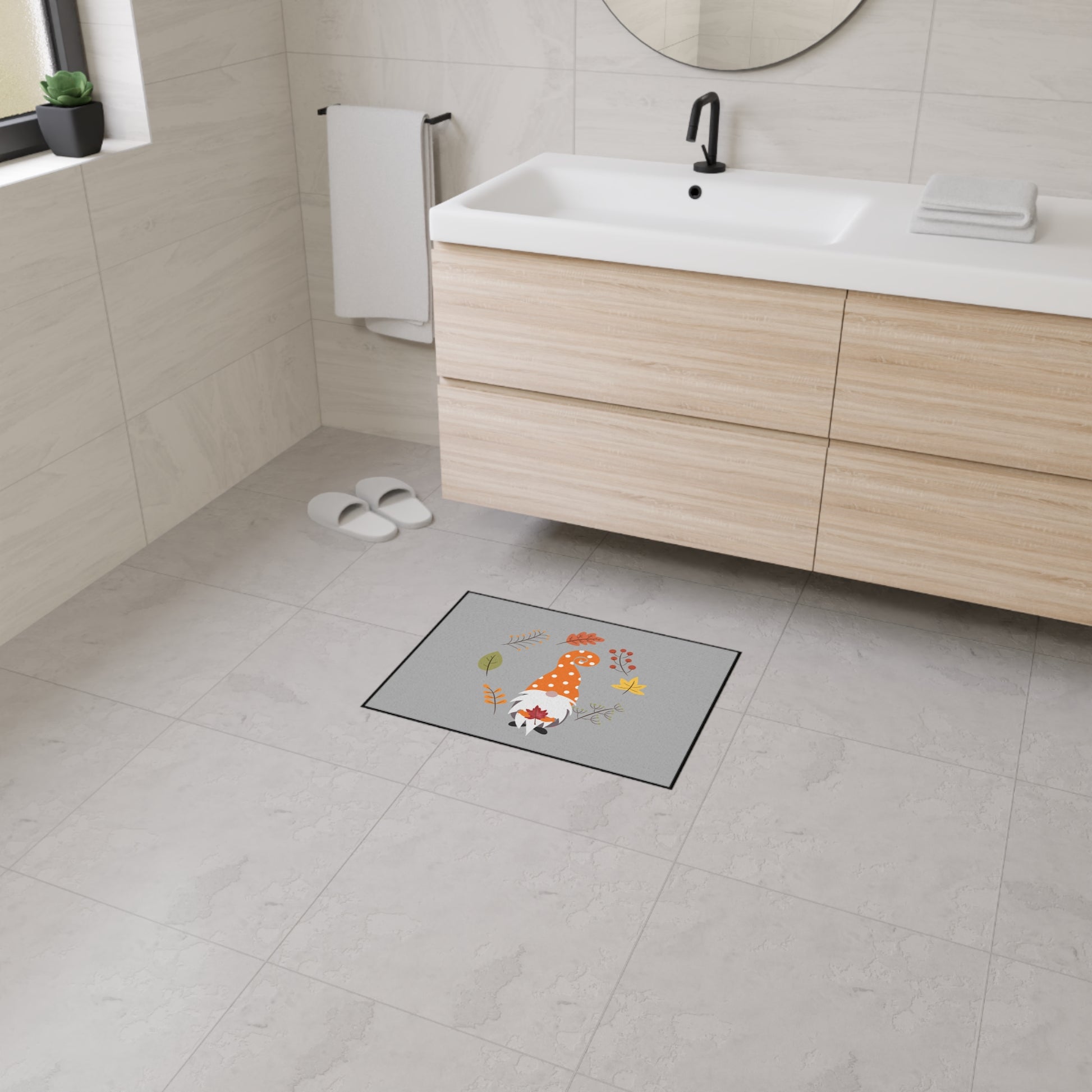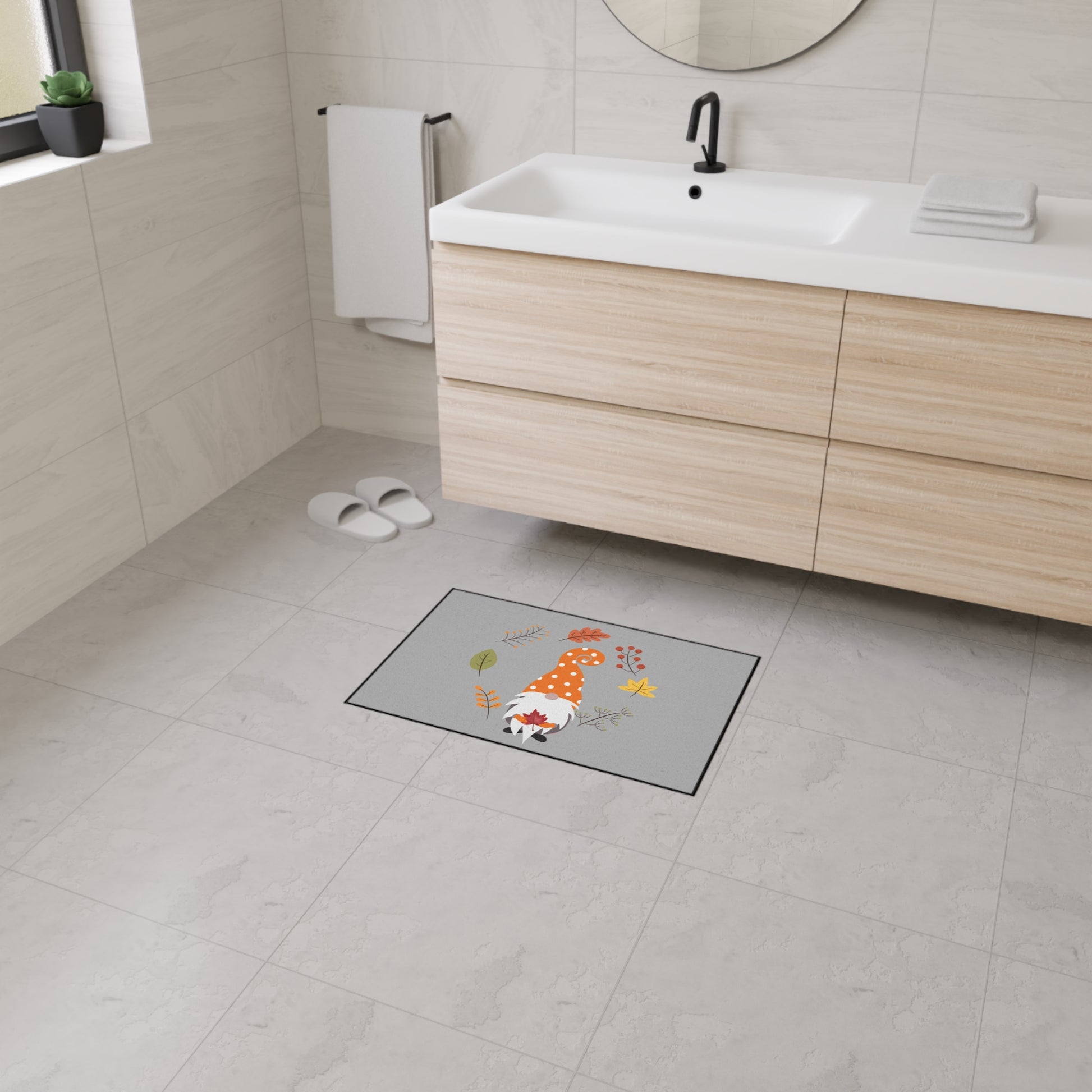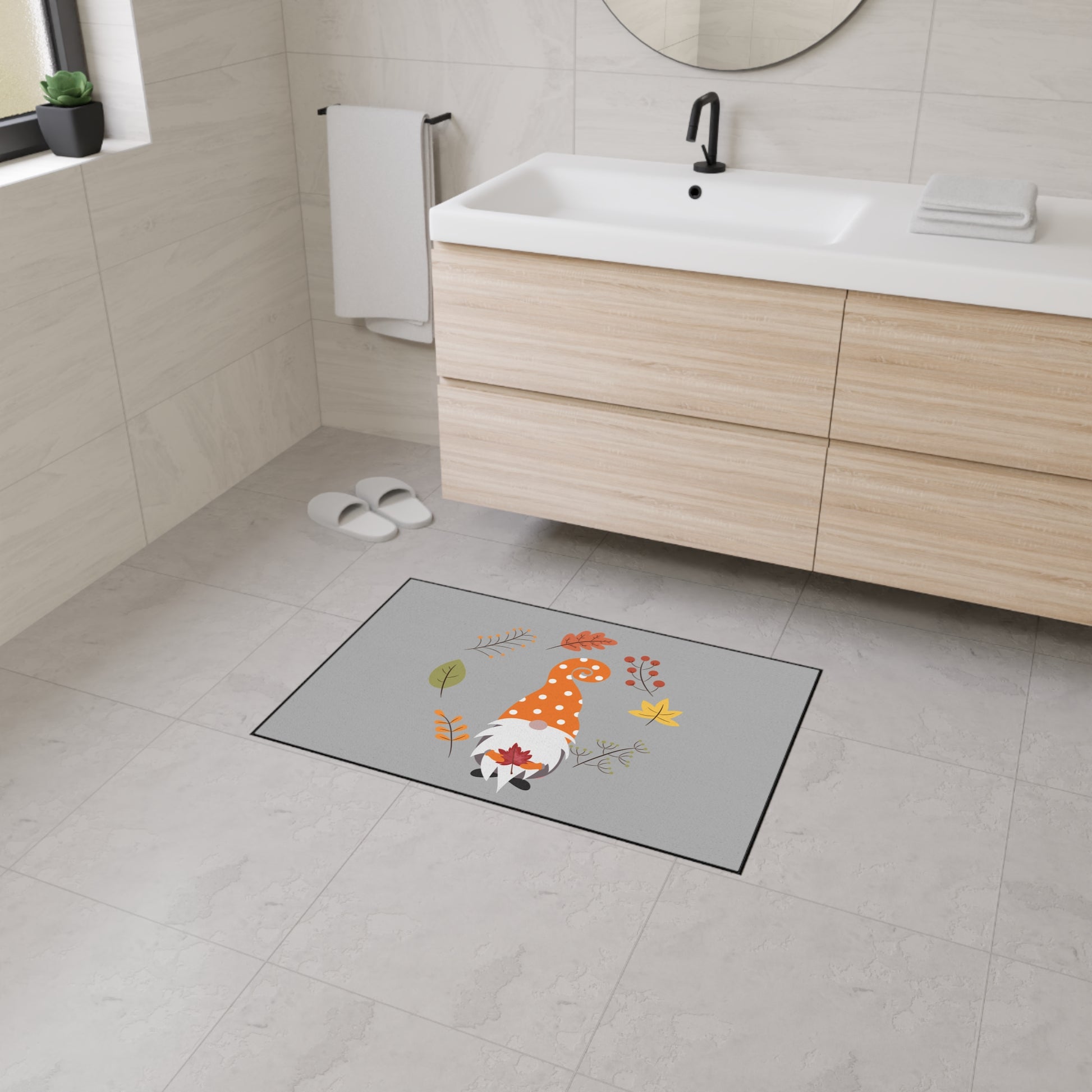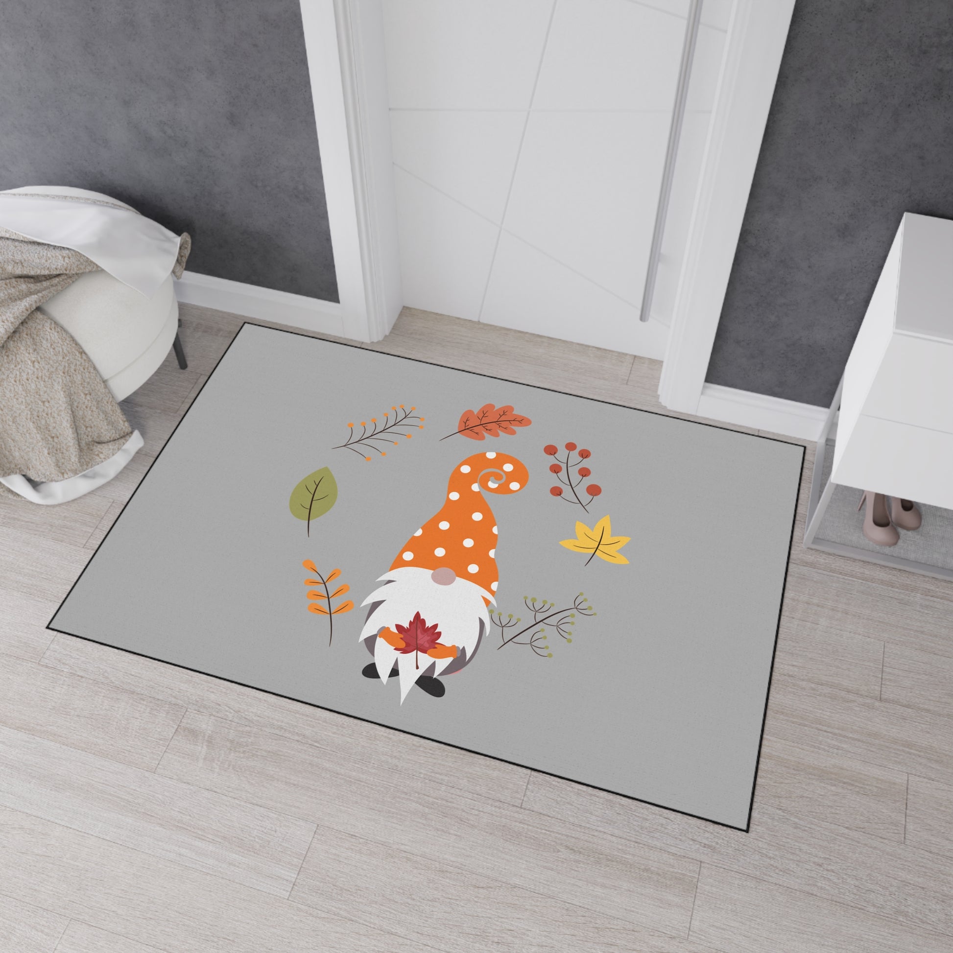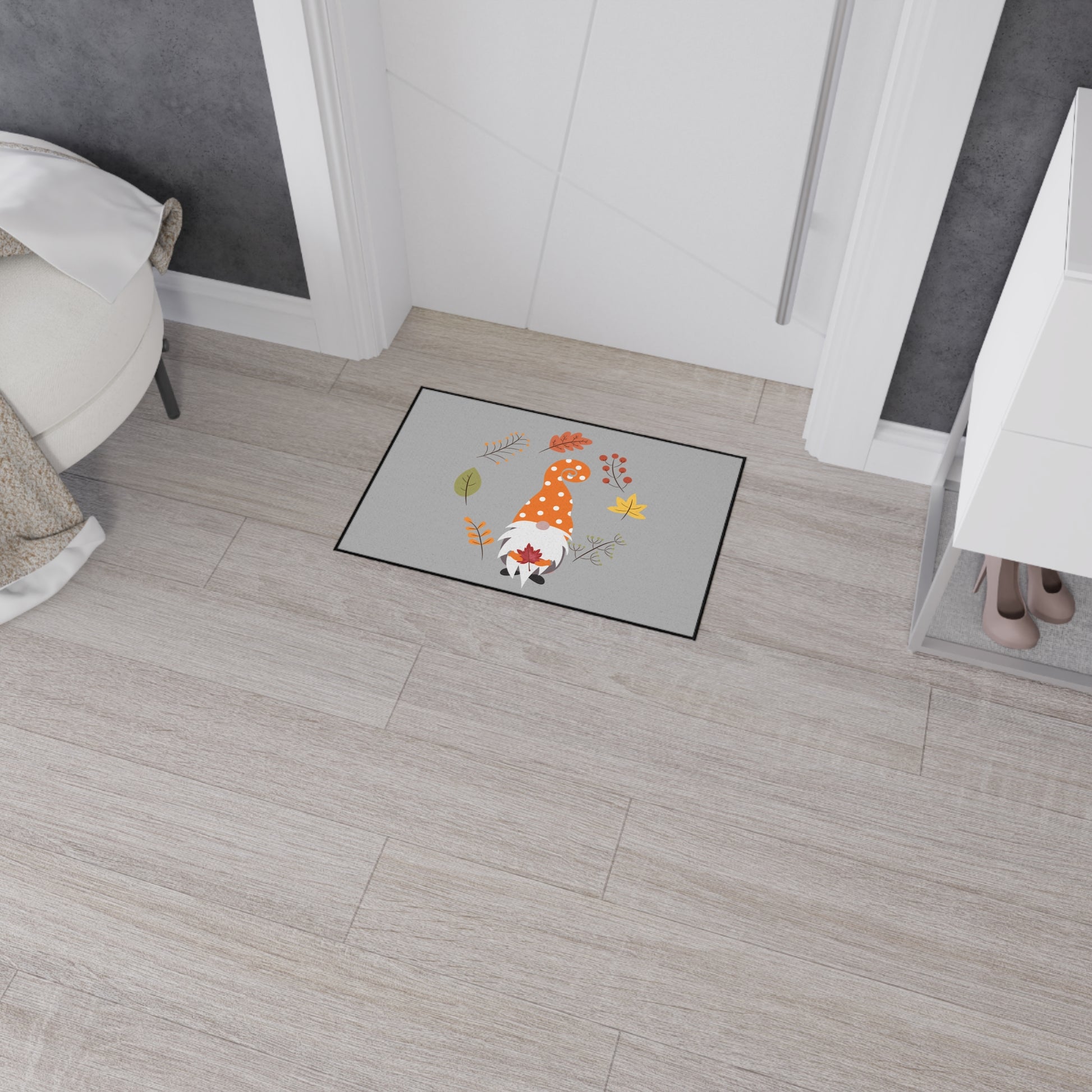 Welcome guests with a playful touch of autumn charm using the "Fall Gnome" Heavy Duty Floor Mat. Featuring a delightful gnome in a fall-inspired design, this durable mat is perfect for high-traffic areas, providing both seasonal style and practical function. Built to withstand the elements and heavy foot traffic, this floor mat is ideal for both indoor and outdoor use, making it a great addition to your entryway, porch, or patio.