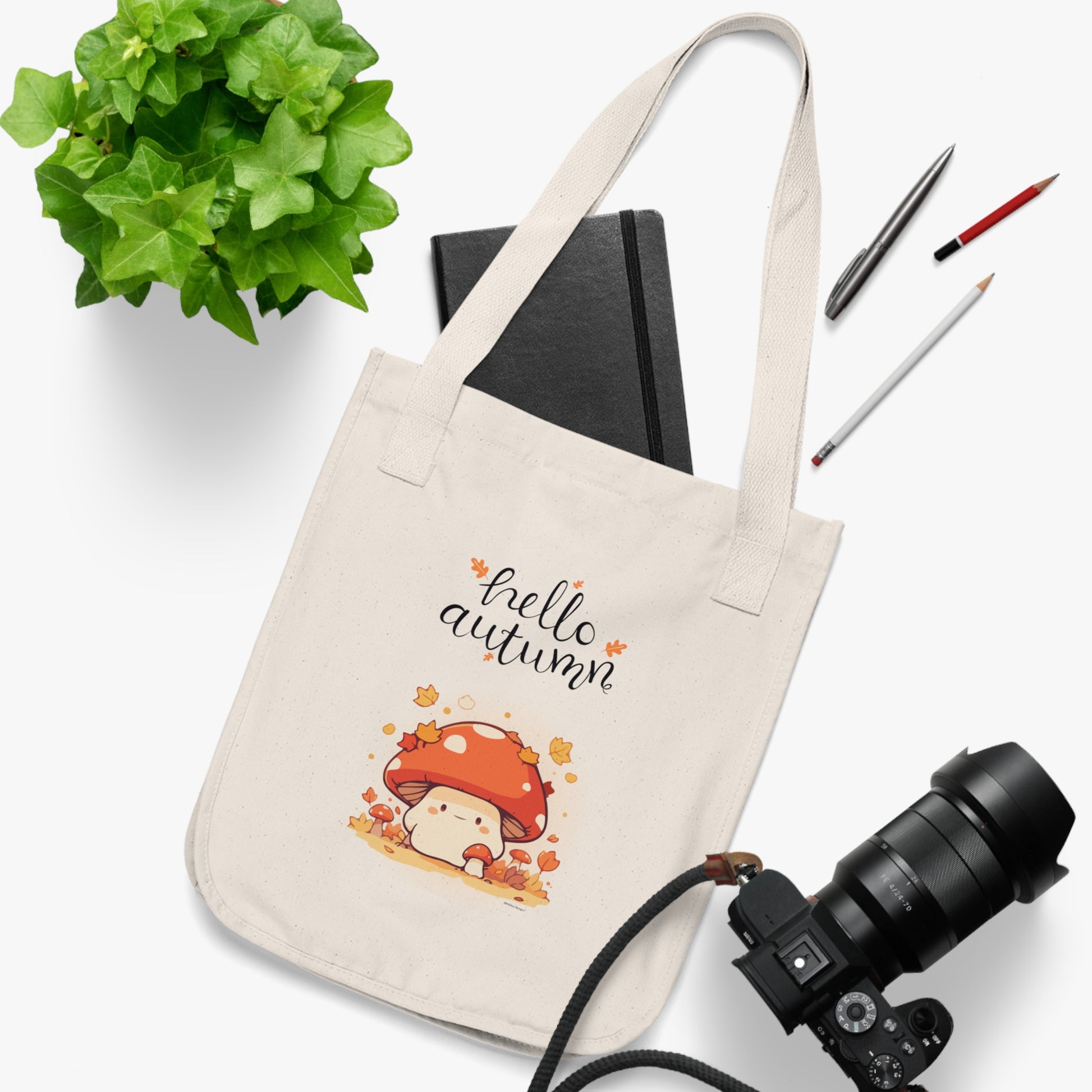 Hello Autumn Organic Canvas Tote Bag | Eco-Friendly Fall-Themed Tote